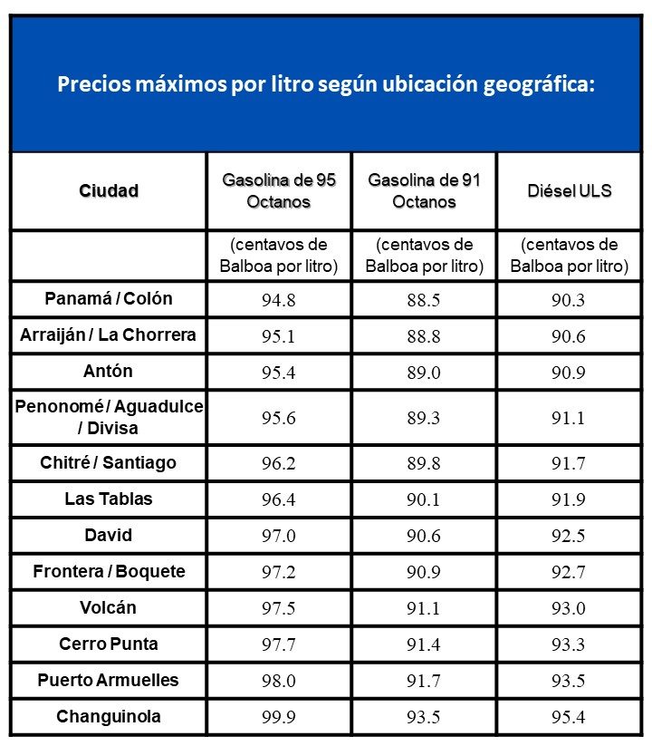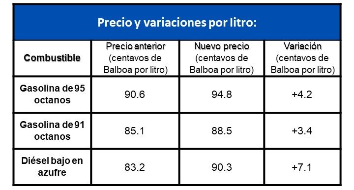Ciudad de Panamá, 4 de marzo de 2026. La Secretaría Nacional de Energía informa que, a partir del viernes 6 de marzo, hasta el jueves 19 de marzo de 2026, estarán vigentes nuevos precios máximos de venta al consumidor de combustibles líquidos, expresados en centavos por litro.